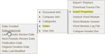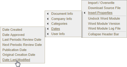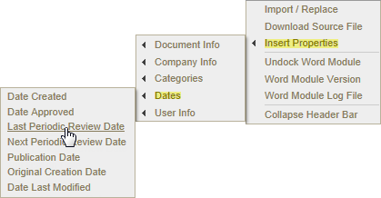 Note: Because the last periodic review date is not set until a document is approved, this field contains "Not Approved Yet" before the document is approved. Also, assigning a periodic review date is optional. If one is not assigned, the inserted field contains "No Review Date."