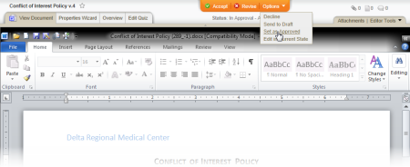 The approval date will also be set if the document owner or document control administrator sets the document as approved.