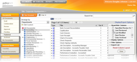 Where to view: The only place to view the last periodic review date besides the inserted property field is in a published document list with the optional Last Reviewed column activated. (DOCUMENTS > Published or Pending > [any Arrange by item that displays a document list] > Display/Export Options > Show/Hide Columns > Last Reviewed > Close)