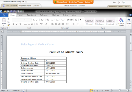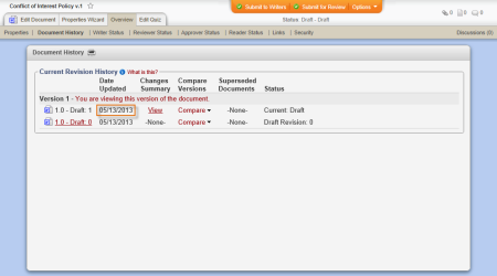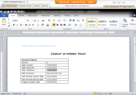 Note: Until a document is approved, this field contains "Not Approved Yet."