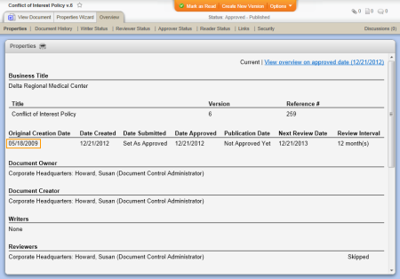When it changes: The document owner or document control administrator can change the original creation date anytime in any active document.
