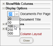 - With a document list displayed in the DOCUMENTS screen, click Display/Export Options, and then click