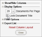 - (Optional) Select the Lock Title check box to freeze the title as the second column from the left as you scroll right and left to see other columns. The Lock Title option is especially useful when the document list contains more columns than can be displayed in the browser window.