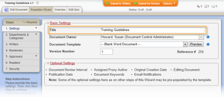 Source: The document creator enters a title while creating a document. (Properties Wizard > 1. Settings > Basic Settings > Title)