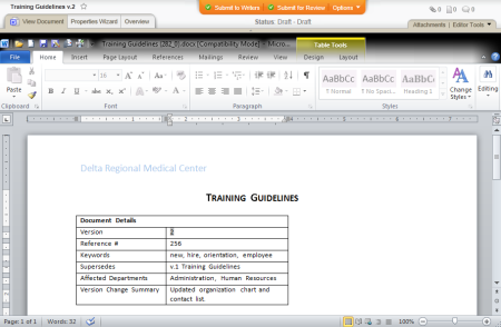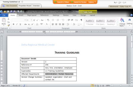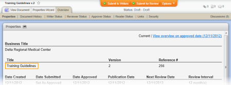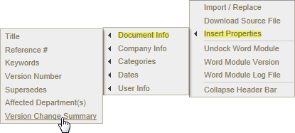 Note: The document creator must enter a version change summary when taking any action that moves the document out of draft status, such as when sending the document to review or approval. If you are creating the first version of a document and it is still in draft status, the inserted field will contain "Not Set."