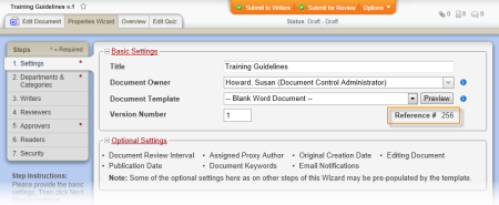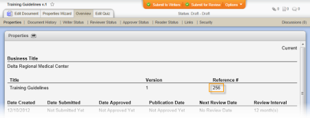 When it changes: The reference number cannot be changed and remains the same for all subsequent versions of a specific document.