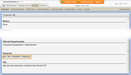 When it changes: The document creator or document control administrator can change the keywords anytime in any active document.