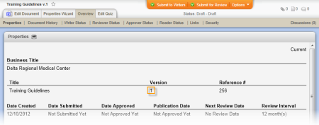 When it changes: The document creator can change the version number only when creating the document and only while it is in draft status.