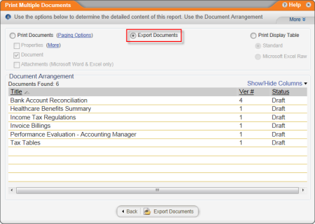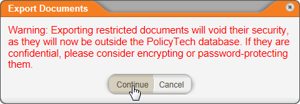 Important: The ability to export documents is available only if it has been enabled. Contact your document control administrator if you have questions.