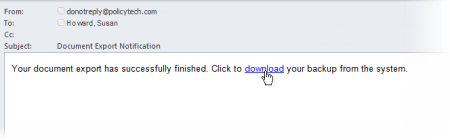 Note: If you are not set up to receive email notifications from PolicyTechâ„¢, click MY TASKS, click Messages, and then click Inbox. Click the Document Export Notification message to view its contents, and then click the download link.