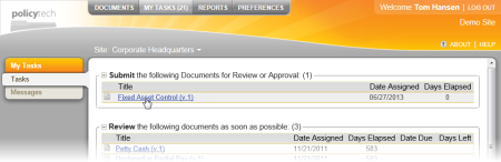 - Click MY TASKS, and then, in the Submit area, click the document title.