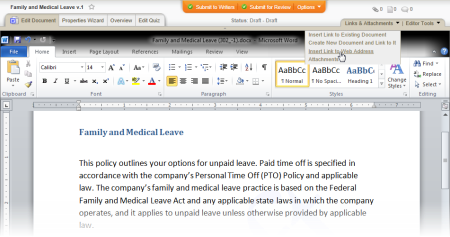 - You can also use the Insert Hyperlink feature in Word and Excel to insert links to web addresses, but those links won't be listed in and manageable from the PolicyTech Attachments feature (see Attaching Files and Adding Reference Links for details).