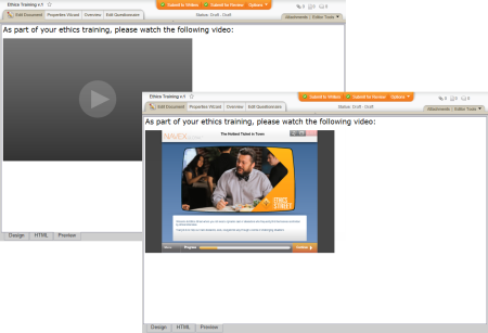 - Popup over document. Clicking the play button in the inserted frame opens a pop-up window above the document (within the document browser window).