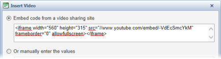 Important: If you see a warning stating that you are attempting to insert a video from a non-secure site, see Security Considerations for Inserted Videos.