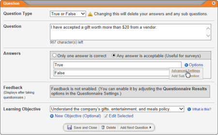 - To the right of an answer you've typed, click Options, and then click Advanced Settings.