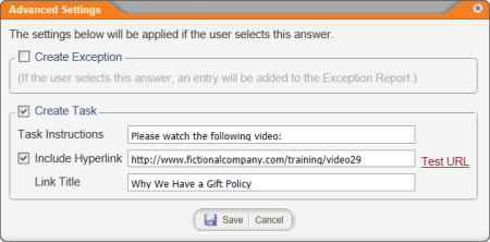 - (Optional) If completing the task includes accessing a website or web page, select the Include Hyperlink check box, type or copy and paste the web address, and then type a link title. If you want to test the link, click Test URL.