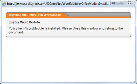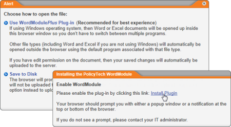 If you have not yet installed the WordModulePlus plug-in and you are using a computer with Windows, you will have a chance to install it as you perform the steps below. After the plug-in is installed and if the document is a Word or Excel document, it will automatically open in a PolicyTech window.