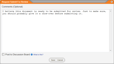 - (Optional) To add what you wrote to this document's discussion board, click Post to Discussion Board (see Working with Document Discussions for details).