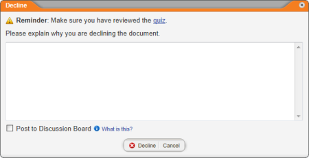 - Click Make Comment and explain why the questionnaire has a problem that caused you to decline the document.