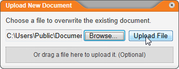 - Click Browse (or Choose File on a Mac), find and select the revised file you saved to disk, and then click Open (or Choose) to add the file name to the Upload New Document window.