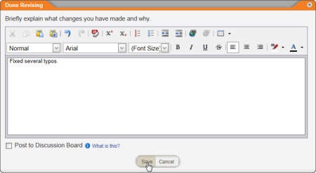 - (Optional) To add what you wrote to this document's discussion board, select the Post to Discussion Board check box (see Working with Document Discussions for details).