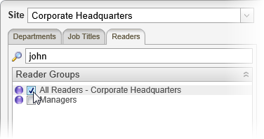 Click the Readers tab, click the Readers heading, and then select one or more individual readers.