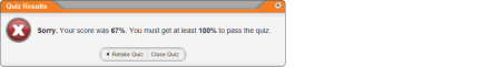 - If you did not pass the questionnaire, click Retake Questionnaire if you want to try again immediately, or click Close Questionnaire if you want to review the document again before retaking the questionnaire.