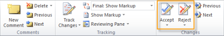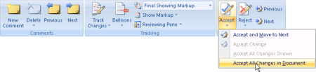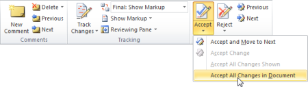 , and then click Accept All Changes in Document or Reject All Changes in Document.