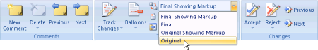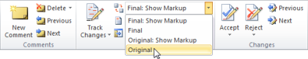 On the Review tab, in the Tracking group, click the arrow next to Final: Show Markup, and then click Original.